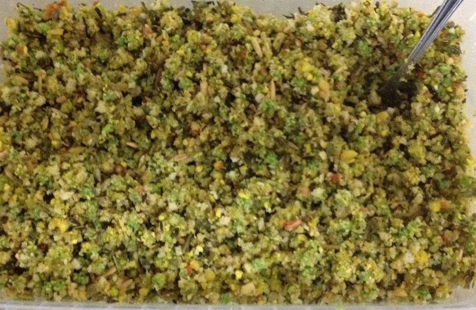 Wat ik een groot voordeel vindt, s'avonds een klein beetje Perle Morbide in het water zetten en de volgende morgen klaar voor gebruik, ander voordeel je kan Perle Morbide ook gewoon voeren als er jonge in het broedblok liggen, wat met het oude kiemzaad nogal voor problemen kon zorgen.