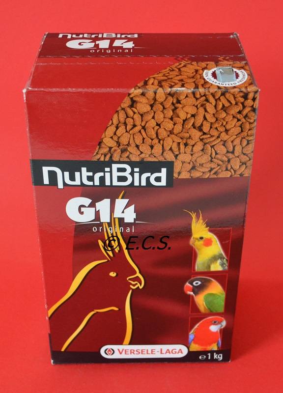 NutriBird G14 Original is a balanced complete maintenance food for large parakeets. Pellets with a scientifically approved composition, based on selected grains, fresh fruits and groundnuts. Completely available, no loss. Contains Florastimul, which supports the intestinal flora and protects against intestinal disorders. If your bird is not used to pellet food, the switch must go to this new feed gradually. Fully balanced diet with all the nutrients your bird needs. The pellet is selective eating impossible and your bird gets all the necessary nutrients. Scientifically sound composition.