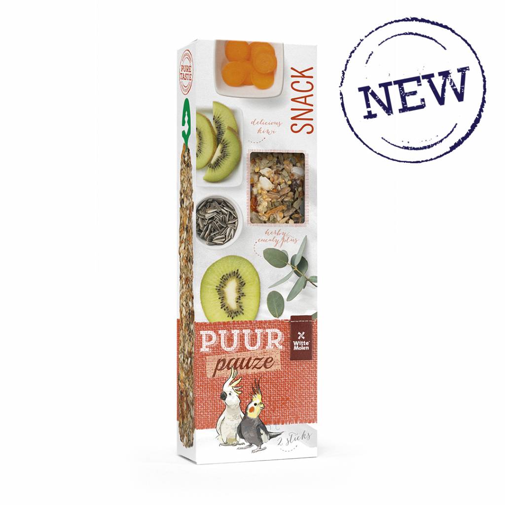 PUUR Pause Seed sticks Cockatoo Gourmet sticks with kiwi and eucalyptus eucalyptus / kiwi / sunflower seeds / carrot pure gourmets seed sticks // richly coated with tasty ingredients / 3x oven baked / boredom does not stand a chance // pure enjoyment